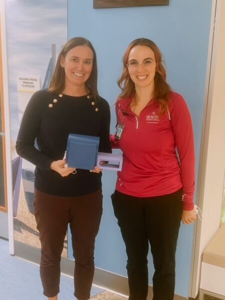 Penn High School Engineering Design teacher Tara Pieters (left) and Beacon Child Life Specialist Rileigh Zickafoose.