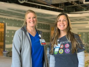 Kim Greising, left, and Kelsey Hay stand in the expansion of Elkhart General Hospital’s infusion therapy center, currently under construction.