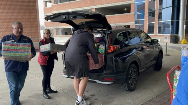 The Allman family unloads gifts to be delivered to Beacon Children’s Hospital patients.