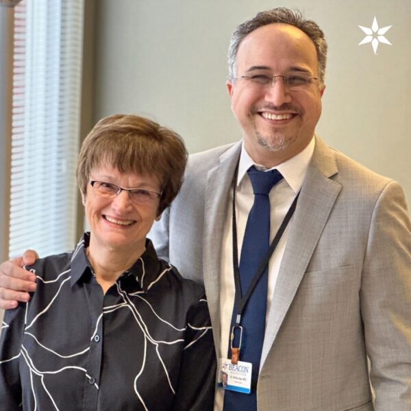 Mary Dunn and Dr. Daniel Srikureja, Beacon Medical Group surgeon