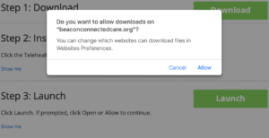 Please note, if this is your first time using our Beacon Connected Care, we encourage you to start your visit 30 minutes before your scheduled appointment to ensure the download is complete and your computers audio and visuals are working.