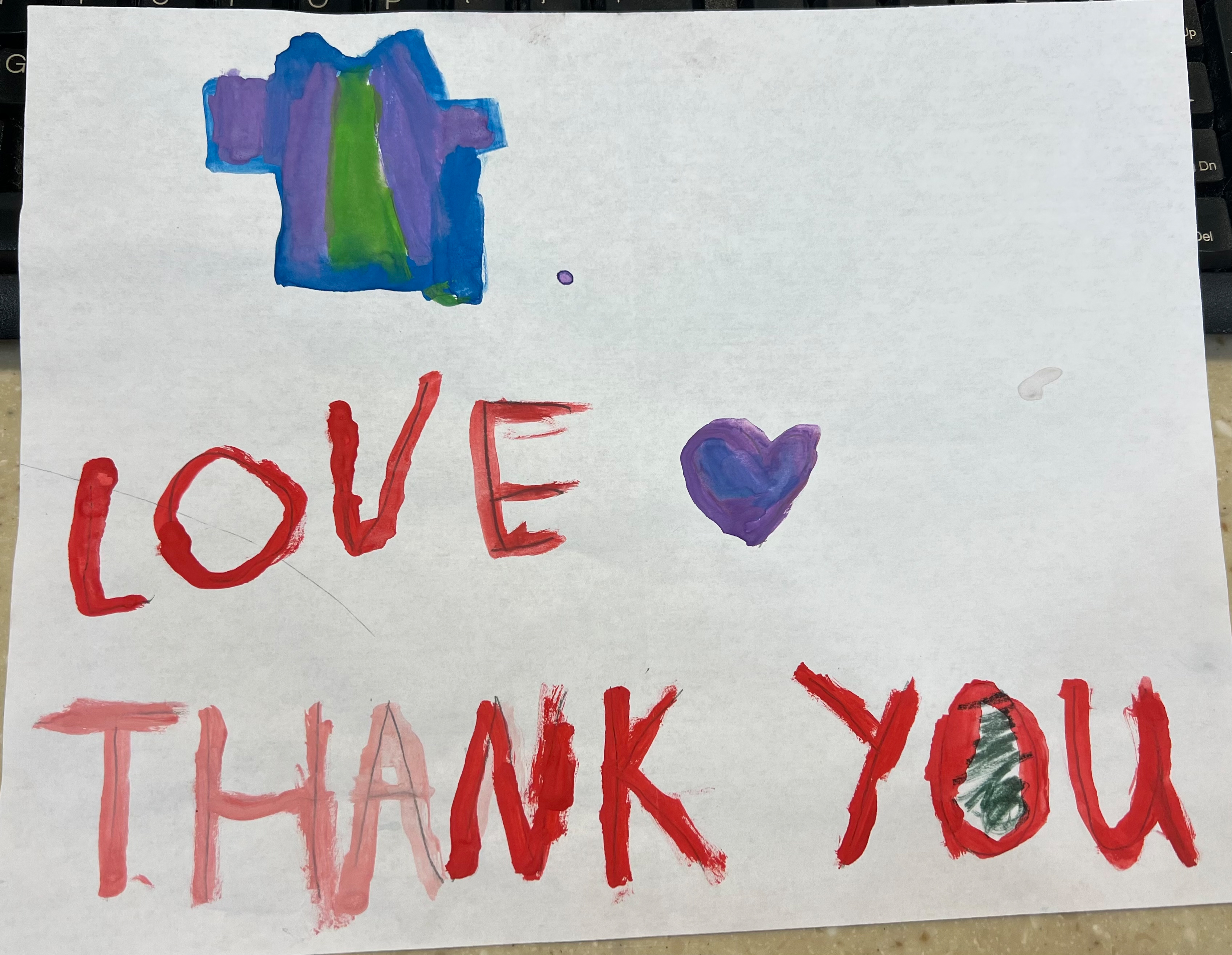 The meaningful message printed by a young patient now has a special place in his home. A place where he can be reminded of what it means to care for and serve others.