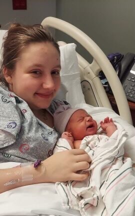 New mom Kaylee Coombs holds baby Sean.