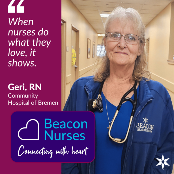 Geri quickly knew she had answered her true calling. “As a new nurse, I was able to help an older man process his diagnosis of lung cancer. I thought, ‘God has put me here to care for others.’” She finds her role as a charge nurse and preceptor in the Medical-Surgical Unit at Community Hospital of Bremen extremely satisfying. “Being able to help patients recover and return to their normal activities is rewarding.”