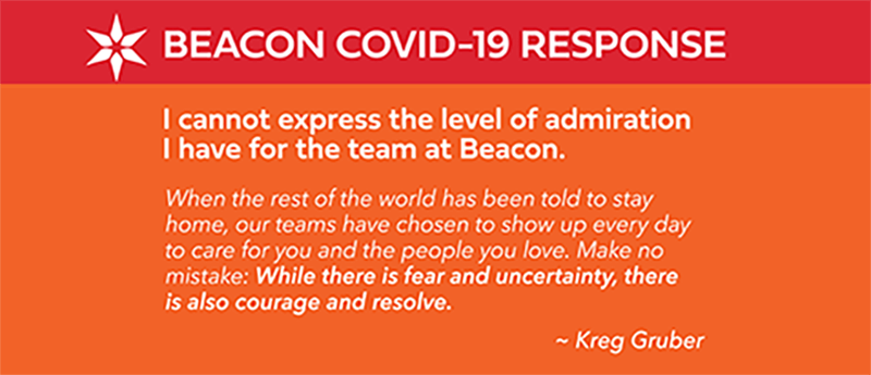 The COVID-19 Pandemic is the great test of our time. At Beacon Health System, we are staying up to date with every change and making sure we are prepared to protect our frontline healthcare heroes as they work to meet critical medical needs in our communities. We are operating a...