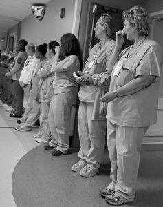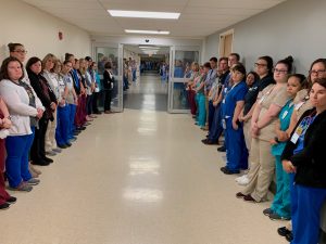 He would’ve loved seeing more than 250 doctors, nurses, technicians, therapists, cafeteria workers, custodians and so many others line the hallways for him. Hallways that 10 minutes prior had been empty, but quickly filled after an overhead announcement asking associates who could spare a few minutes to assemble for a special tribute.